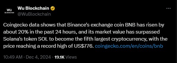 During this period, BNB briefly overtook several other major altcoins by market capitalization, solidifying its position in the top five global cryptocurrencies.