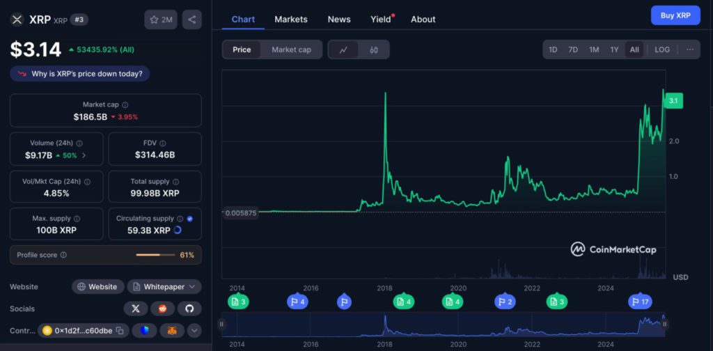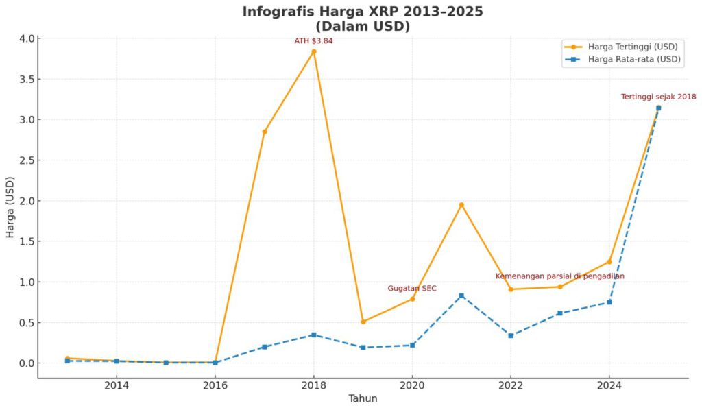 Jakarta, Pintu News – Since its debut at under a penny on the US dollar, XRP -or Ripple-hasexperienced a dynamic price journey, reaching historical peaks above USD 3, and now occupying a price range that indicates high potential and stability.