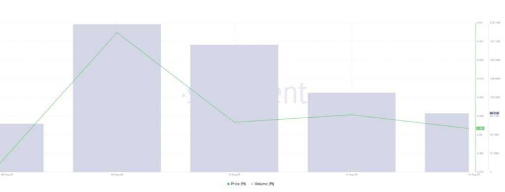 Although PI prices recorded a 2% increase on August 13, in line with the general strengthening of the crypto market, the 26% drop in trading volume raises a cautionary signal.