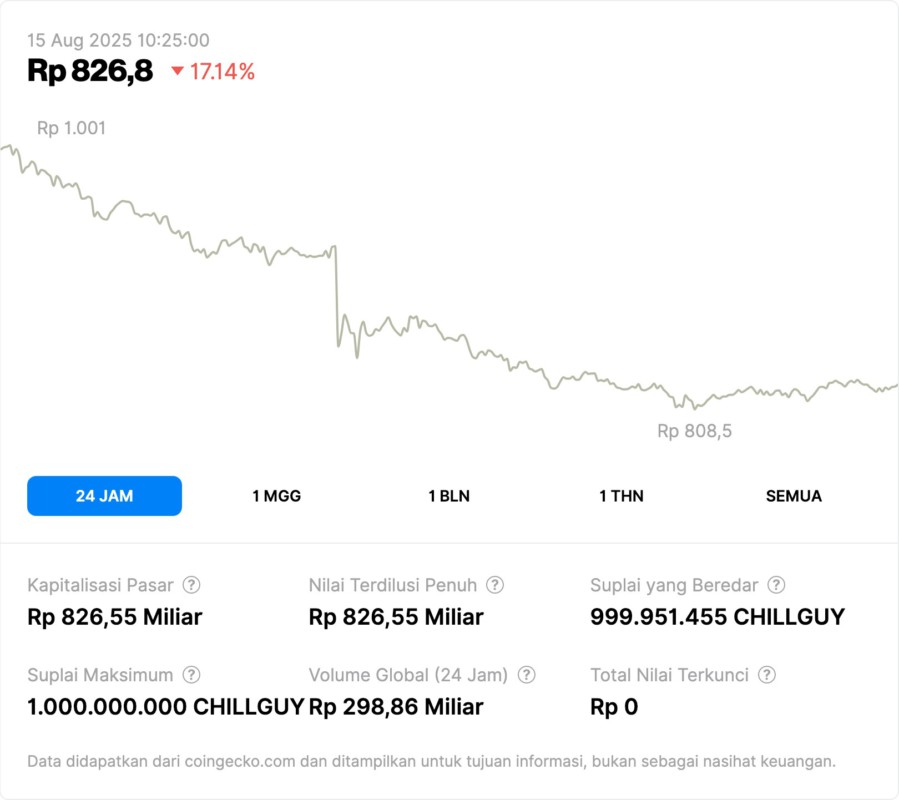 Meanwhile, Just a Chillguy became the top loser with a 17.09% drop to IDR826.9. This directional divergence shows the rapid capital rotation between assets in the last 24 hours.