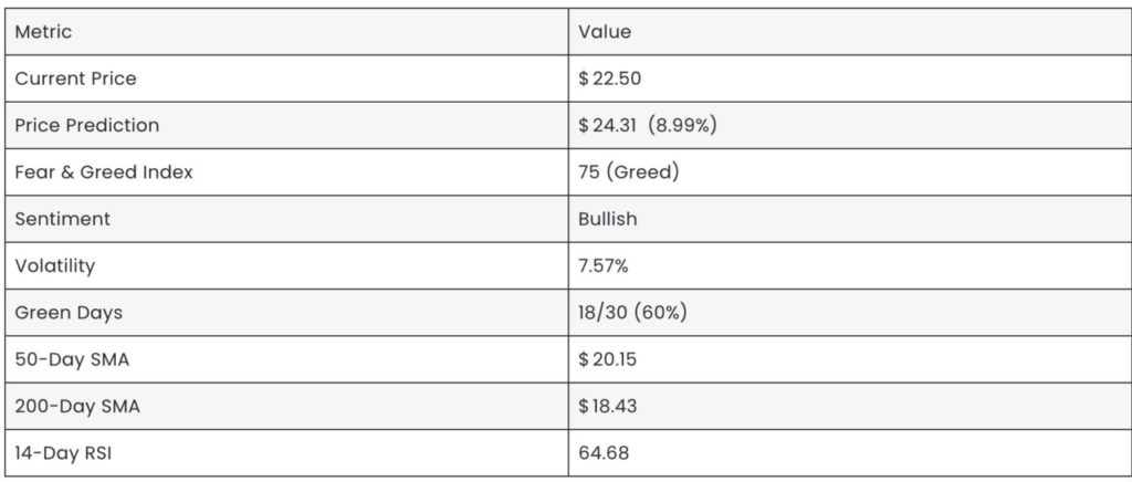 The latest technical analysis shows that selling pressure still dominates, with ETC trading around $22.30 (€360,646), down 4% in the last 24 hours. However, the RSI and SMA indicators show that the bearish momentum is starting to weaken.