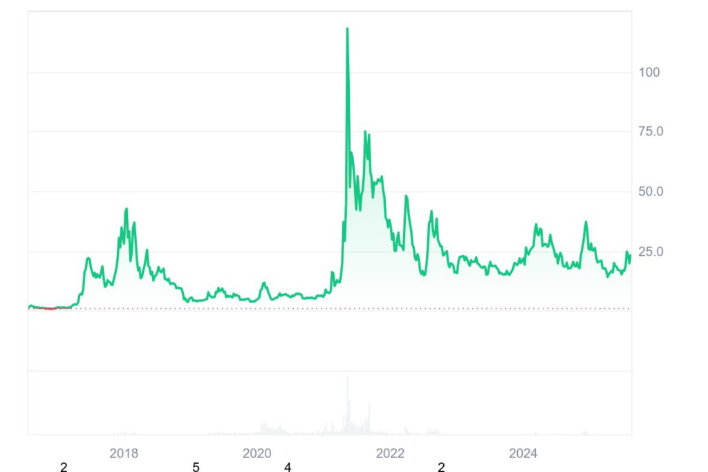 With the current price hovering around $22, ETC is still far from its record high of $176.16 . But many analysts see exciting long-term growth potential.
