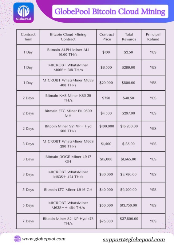 This makes it easy for users to explore different mining packages without pressure. In addition, GlobePool has an affiliate program that provides up to 5% commission per successful referral. The real-time dashboard makes it easy for users to monitor their traffic and revenue from referrals.