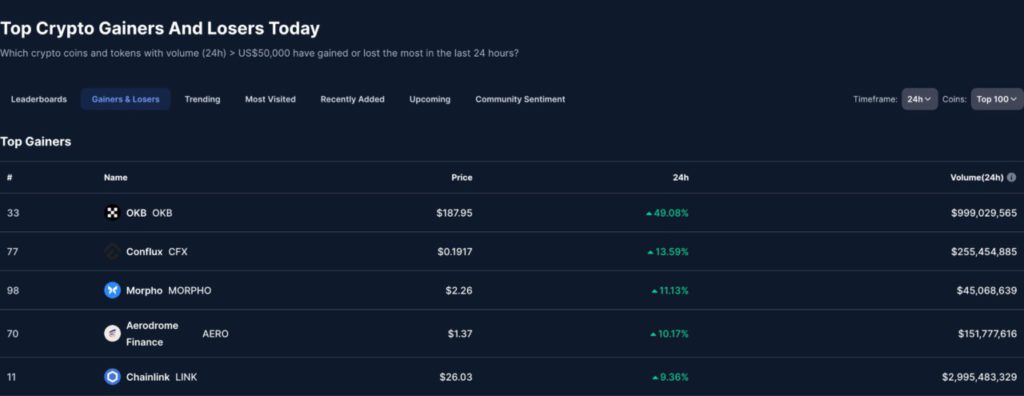 Gambar Top 5 Crypto Rank with the Highest Gain Today, OKB Leads the Surge! (08/21/25)