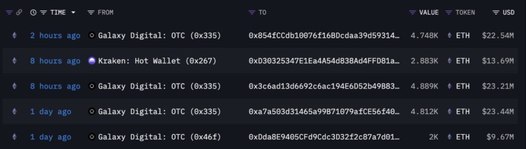 In addition, Lookonchain also reported that there are several other wallets associated with the Ethereum treasury company, Bitmine Immersion (BMNR), which has also purchased an additional 9,613 ETH worth $45.6 million. This suggests that not only individual investors, but also corporate entities are starting to increase their Ethereum (ETH) stocks, perhaps as part of an asset diversification strategy or long-term price speculation.