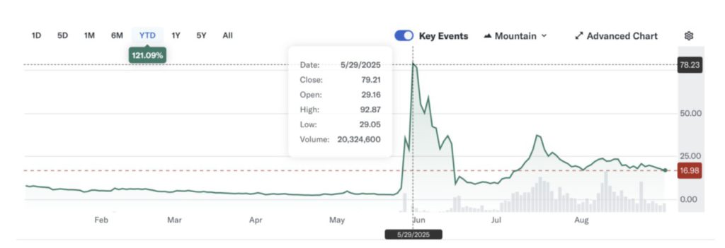 Despite aggressively buying ETH, SharpLink (SBET) shares continue to experience volatility. On Tuesday (2/9), SBET’s share price was trading at $16.98, down nearly 5% on the day, even though the stock has risen more than 400% since mid-May, when its share price was below $3.