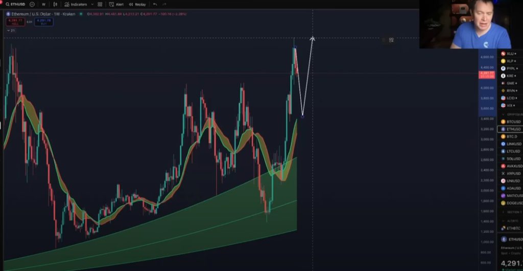 After hitting the predicted low, Cowen believes that Ethereum (ETH) will start a strong recovery. The analyst predicts that after touching the 21-week exponential moving average (EMA), Ethereum will rise again and reach new record highs.