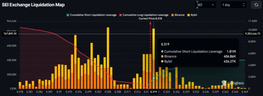 Additionally, there is approximately $1.81 million in risky short positions near the $0.319 level. If the price of SEI manages to break this level, those short positions could potentially be liquidated, which would add to the buying pressure in the market. The Liquidation Map shows that the next critical levels are $0.326 on the upside and $0.295 on the downside, which if crossed, could trigger further volatility.