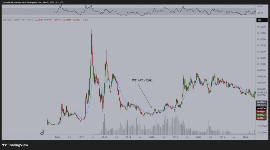 According to van de Poppe, the current correction period is often misinterpreted as a market top. However, in reality, it is an accumulation phase before the next big spike. This signals that the market may be preparing for a significant breakout phase.