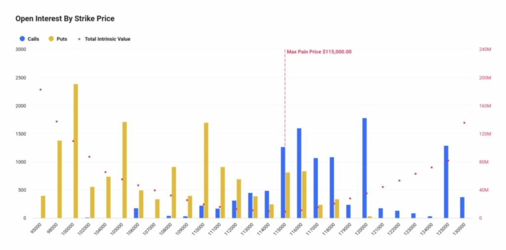 Secara khusus, level strike price $120.000 tercatat memiliki posisi call dengan nilai nosional sekitar $200 juta untuk setiap masa kedaluwarsa opsi BTC dalam tiga hari ke depan. Selain itu, dalam skenario bullish, para pedagang opsi juga membidik level $125.000, sementara dalam skenario bearish, target berada di kisaran $115.000 untuk opsi BTC yang akan jatuh tempo pada hari Jumat setelah FOMC.