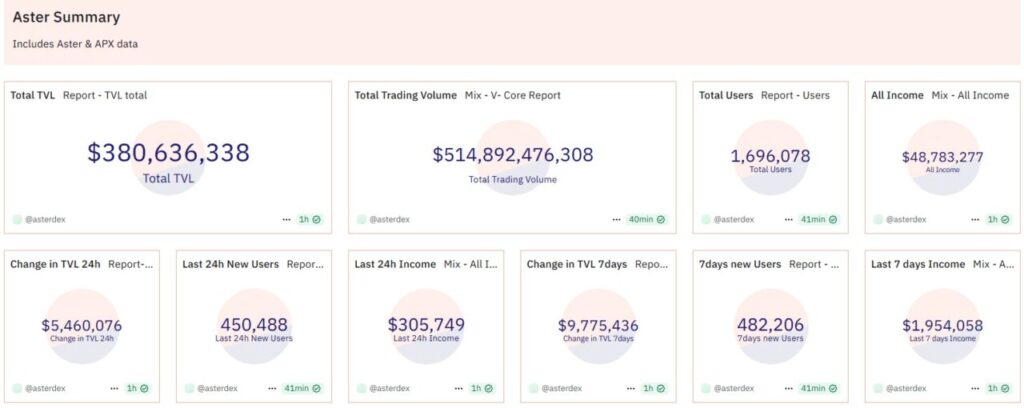 On-chain data also shows that more than 1.2 million unique wallets have been connected to Aster, and the Total Value Locked (TVL) surpassed $400 million. These figures show the high enthusiasm of the community and early adopters for the project.