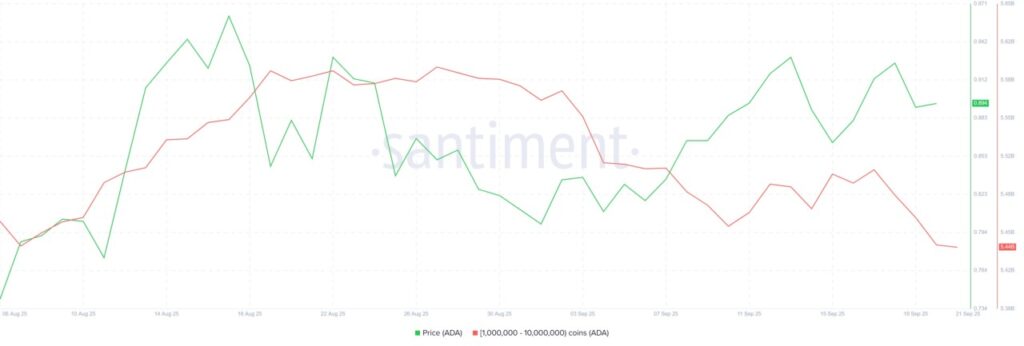 The whales have been the main driver of the bearish atmosphere engulfing Cardano (ADA) at the moment. Recent data shows that addresses holding between 1 million to 10 million ADA have sold over 560 million tokens in just four days.