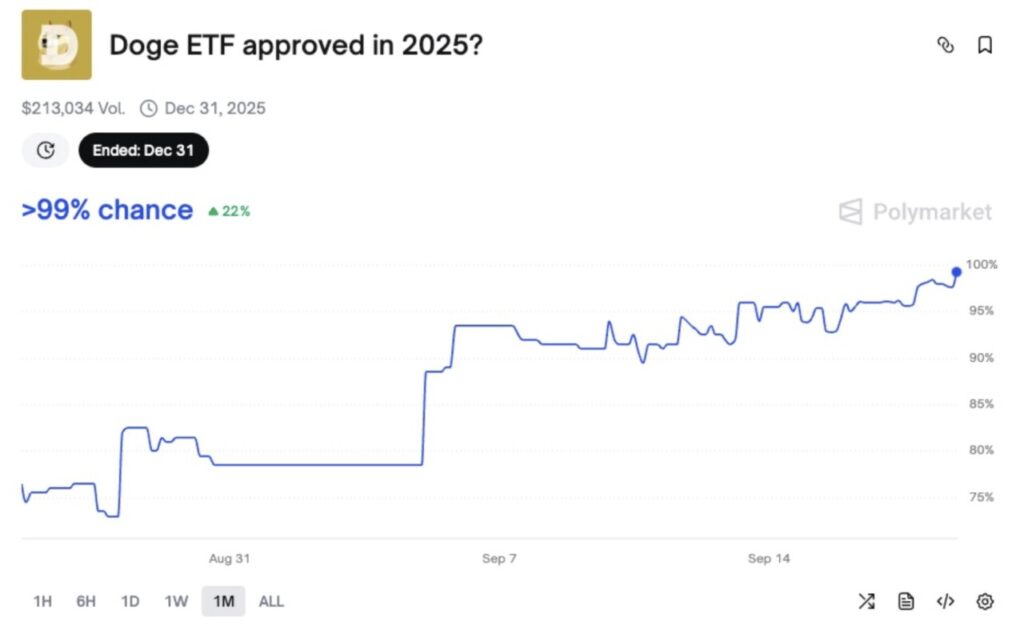In addition, the launch of the Rex-Osprey Dogecoin ETF (DOJE) last week also boosted market sentiment. Based on data from prediction platform Polymarket, the chances of spot approval of the DOGE ETF jumped to 99%, up 22% in the past month.