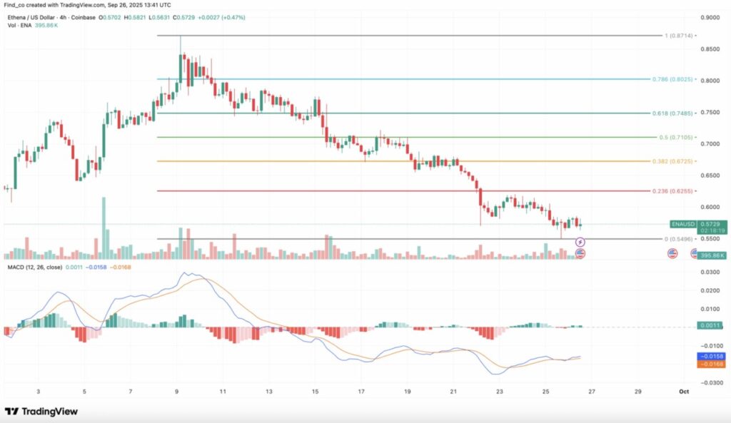 On the technical front, the 4-hour chart (28/9) shows a bullish divergence on ENA. Although the token is down 15% in the last seven days, momentum indicators are starting to reverse direction.