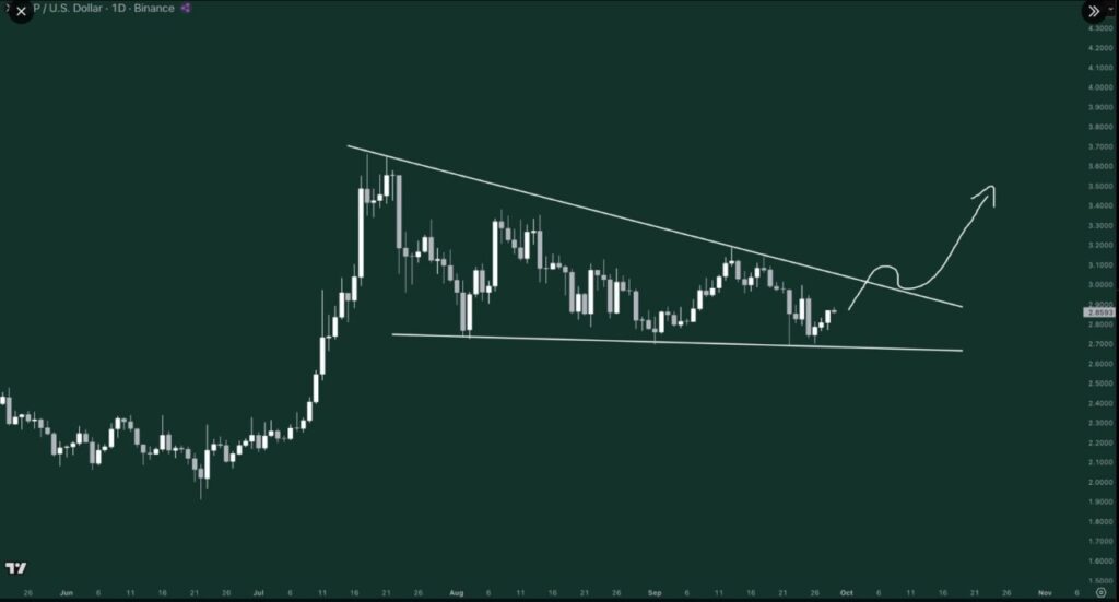 The short-term chart shows that XRP is compressing after experiencing a decline since July, when the token reached a price of $3.60. Altcoin Gordon shared a chart showing the price of XRP approaching a break point. This indicates that a price spike could happen at any time, forcing traders to make quick and informed decisions.