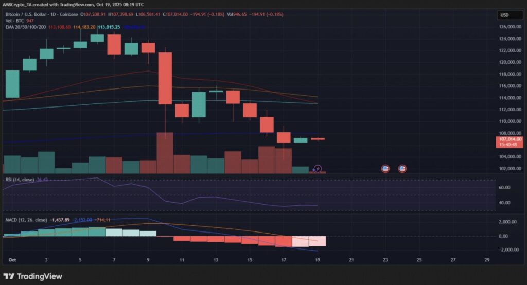 After several days of relentless selling pressure, Bitcoin seems to be showing signs of stabilizing around $107,000 at the time of writing this report.