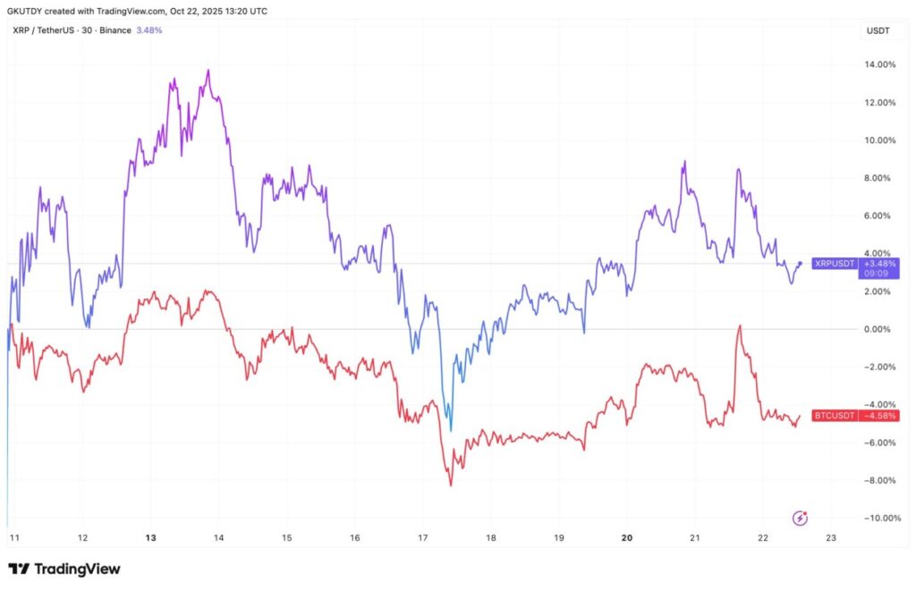 In terms of value against the American dollar, Ripple (XRP) is also showing significant strength. Since “Crypto Black Friday,” the altcoin has seen a gain of over 3.4%, while Bitcoin (BTC) lost up to 4.6%-creating a gap of 7% in less than two weeks.