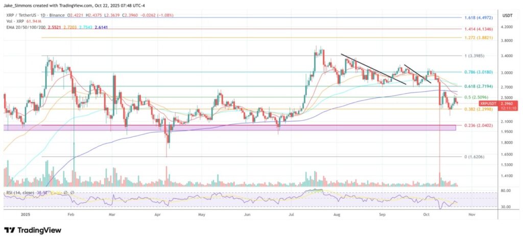 He also predicts that there will be a price drawdown on the day of the spot product launch, although overall he remains bullish on the inflow of funds in the weeks and months that follow. Currently, the price of XRP stands at $2.39.