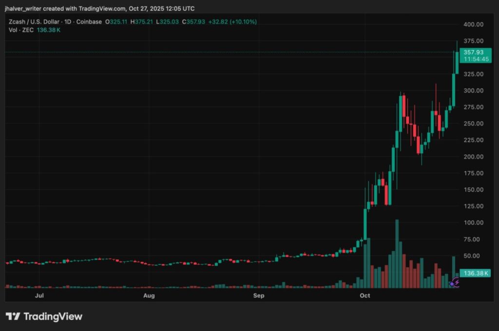 Gambar Zcash (ZEC) Soars, Arthur Hayes Forecasts Price to Reach $10,000 (10/29/25)