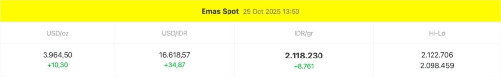 Overall, Antam’s gold price today shows a positive performance at the end of October 2025. Although volatility is still high, data from HargaEmas.com shows that gold remains a safe investment option amid global uncertainty.