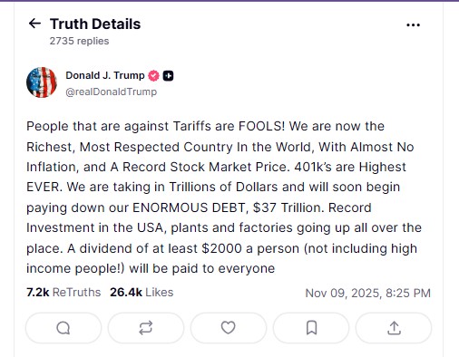 According to recent reports, this plan was proposed as a way to convert tariff revenue into direct payments to citizens. Proponents of the plan attribute the move to increased consumer spending and a higher risk appetite among investors.