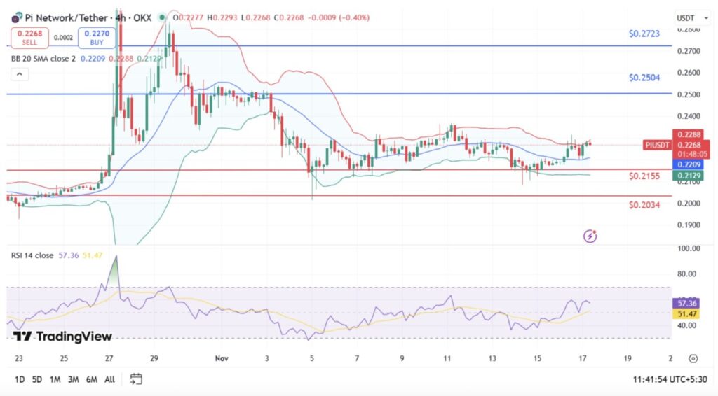 Trader disarankan untuk mengawasi level $0,215 secara ketat. Jika harga Pi ditutup di bawah level ini, maka pola bullish yang terbentuk akan dianggap gagal, dan memberi peluang bagi pihak bear untuk mengambil alih.