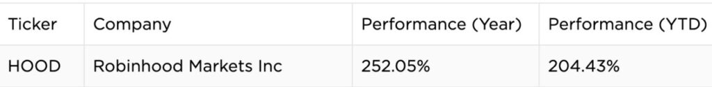 Saham Robinhood Markets Inc. mencatatkan lonjakan performa yang luar biasa sepanjang tahun ini. Berdasarkan data terbaru, kinerja saham HOOD dalam satu tahun terakhir mencapai 252,05%, sementara performa Year-to-Date (YTD) berada di level 204,43%.
