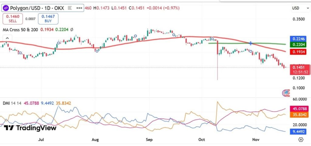 Despite the collaboration announced, the POL token is still down 3.24% in the last 24 hours, trading at $0.145 at the time of writing.