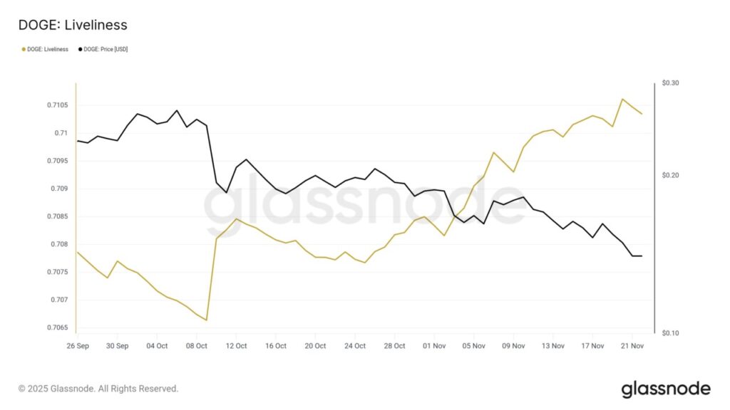 Dogecoin’s (DOGE) NVT ratio experienced a sharp spike, indicating a mismatch between valuation and on-chain activity. This ratio compares market capitalization to transaction volume, and spikes usually indicate limited transactional utility compared to price. Although Dogecoin gained a lot of social attention and widespread support, its actual transaction rate did not follow suit.