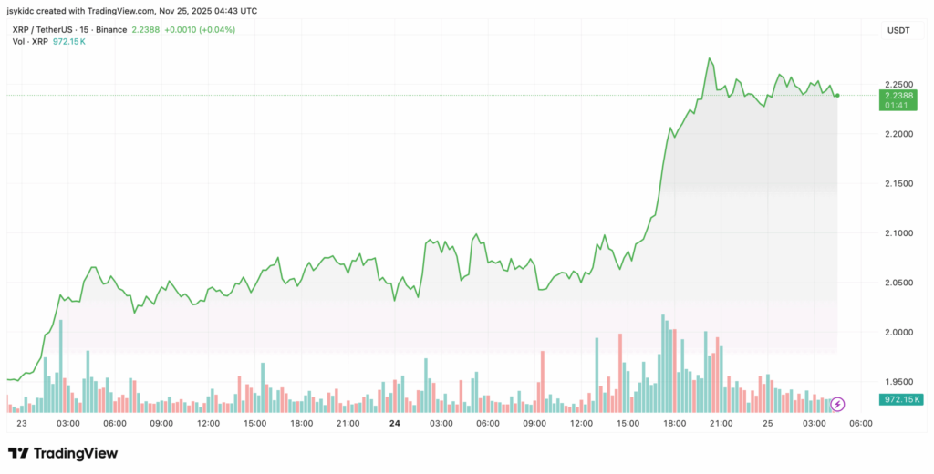 Pasar merespons positif dengan kenaikan harga XRP lebih dari 7% menjadi $2,24, menunjukkan penerimaan yang kuat terhadap produk investasi yang diatur dan mudah diakses.