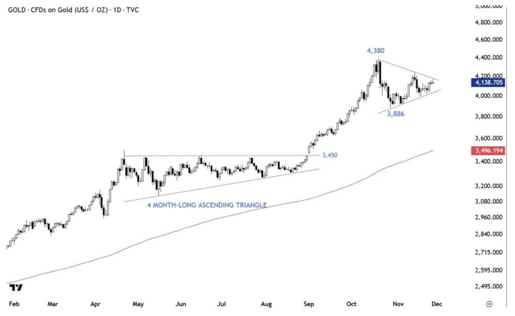 Sentimen positif ini juga diperkuat oleh meningkatnya kemungkinan pembalikan tren di pasar emas. Dalam beberapa minggu terakhir, harga emas membentuk pola pembalikan, seiring dengan aksi ambil untung oleh investor jangka pendek. Hal ini mendorong rotasi modal dari emas ke Bitcoin dan aset kripto lainnya.