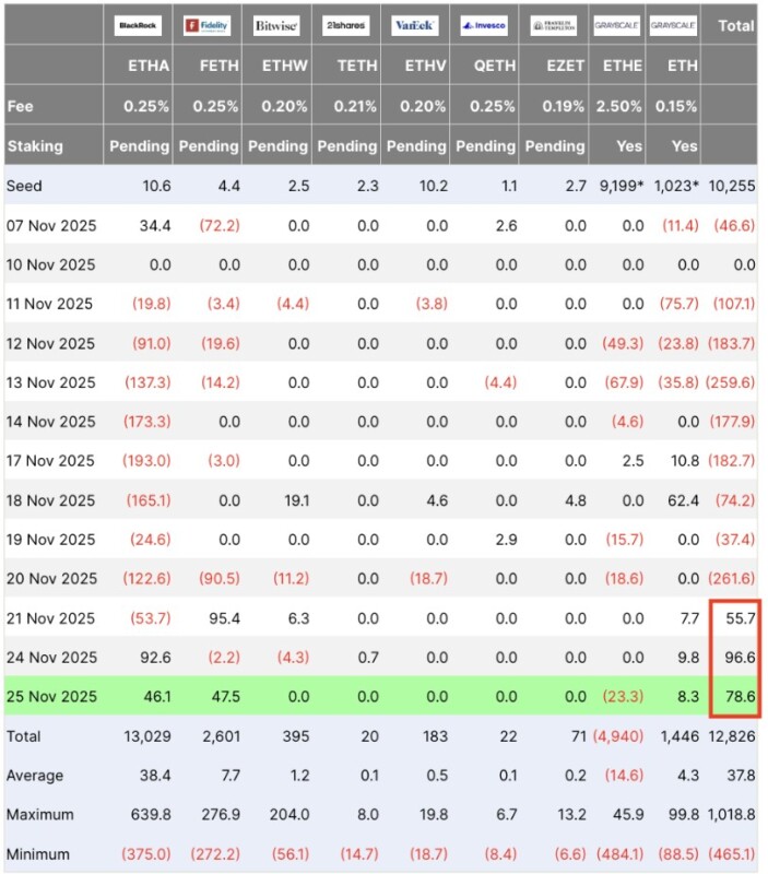 This change comes after a period of sharp decline from November 11 to 20, when the Ethereum fund experienced outflows of $1.28 billion-one of the most significant periods of decline since the ETF was launched.