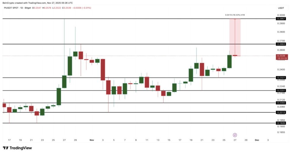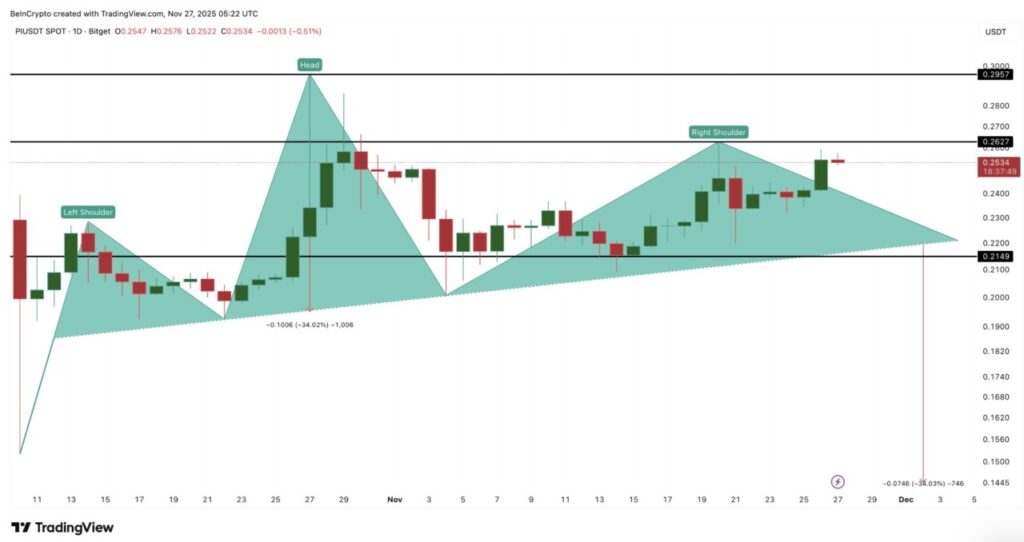 On November 27, Pi Coin briefly traded around $0.26, but this level was not enough to determine the direction of the next move. The crucial level that could invalidate the bearish pattern (head-and-shoulders) is at $0.29.