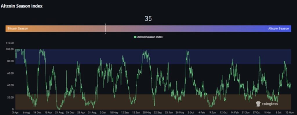 Altcoin season index juga menunjukkan bahwa pasar saat ini masih lebih condong ke Bitcoin. Namun, hal ini justru bisa menjadi sinyal waktu yang tepat untuk altcoin, terutama karena kondisi pasar mulai pulih.