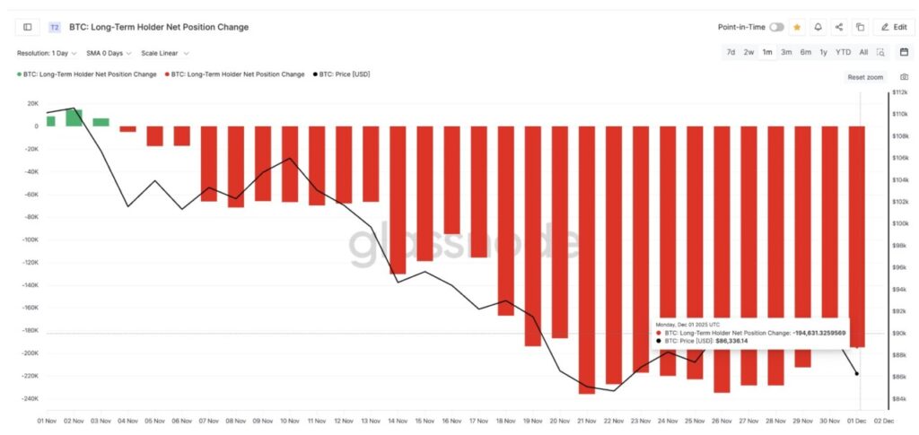 But by December 1, its value had jumped to around 194,600 BTC – up more than 300% compared to before. This shows that holders with high confidence in Bitcoin are still continuing to reduce their exposure.