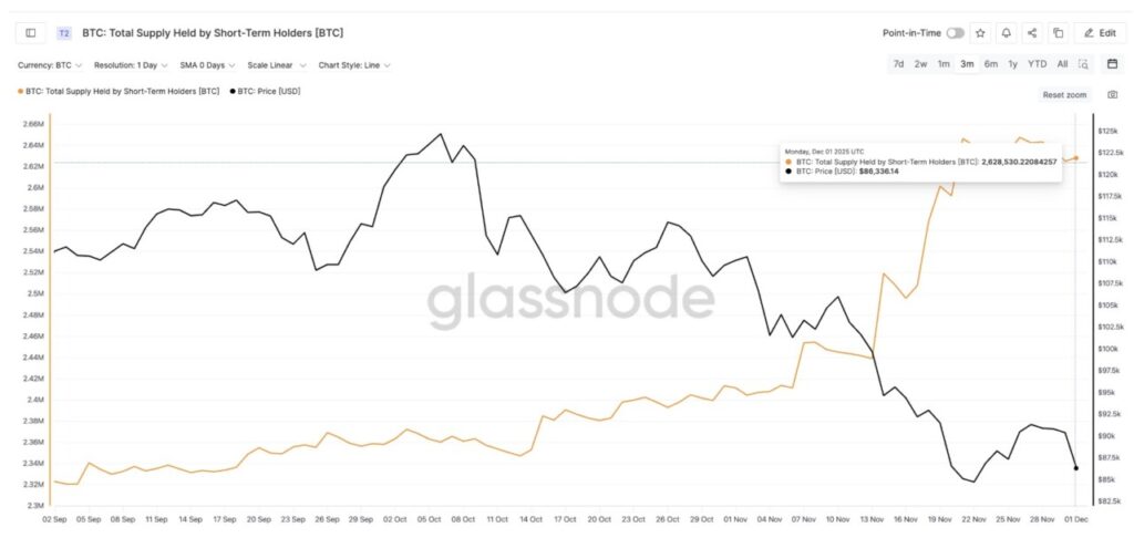 The total supply held by short-term holders now stands at around 2.63 million BTC – just less than 1% below its highest level in the last three months. Sounds optimistic, right? But not entirely so.