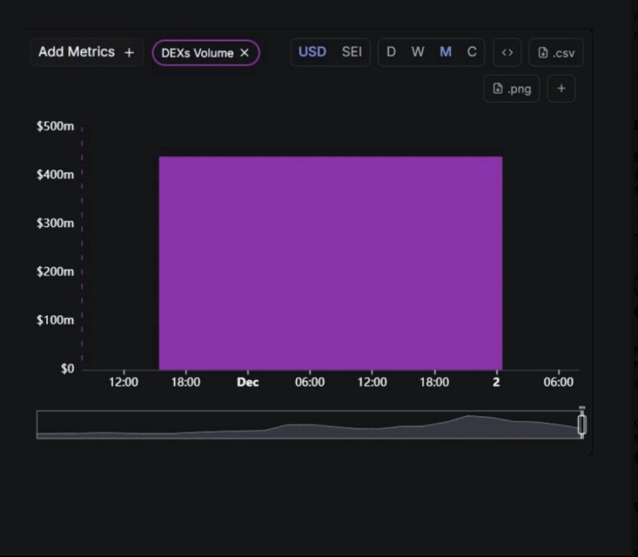 Amidst the price stagnation, SEI’s on-chain metrics showed significant improvement. Trading volume on the decentralized exchange (DEX) has surpassed $400 million in the past two weeks, based on network activity data. This spike signifies increased usage and transaction flow at lower price levels.