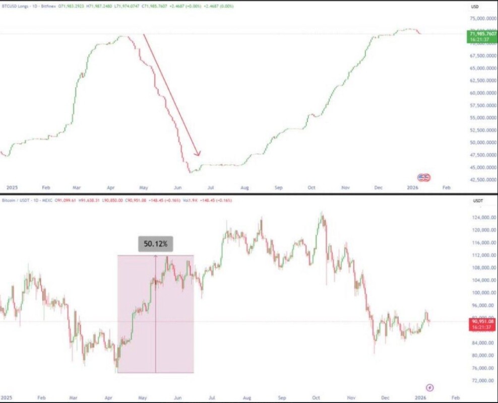 This change is seen as part of a risk maneuver by large holders, which is sometimes done before strong volatility momentum. In the past, similar actions have occurred before BTC prices experienced sharp reversals and strong rallies. Some traders highlighted historical reflective patterns, where clearing long positions can clear leverage and open up new price direction opportunities.
