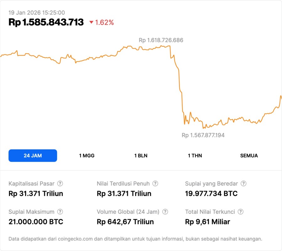 Jakarta, Pintu News – Bitcoin experienced a price drop to levels below USD 93,000 in recent trading after an earlier rally weakened and a massive long liquidation reaching hundreds of millions of dollars, an event that reflects the pressure on the cryptocurrency market more broadly.