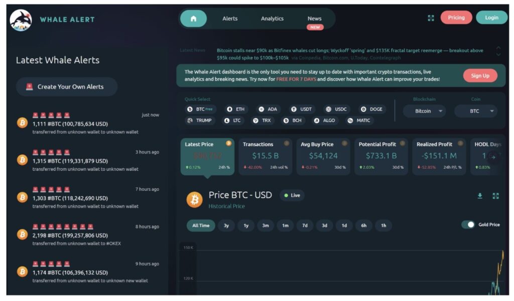 Many traders use Whale Alert to observe large transfers between wallets and exchanges.