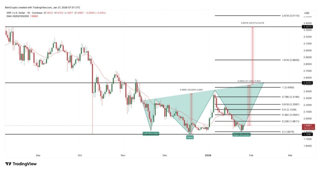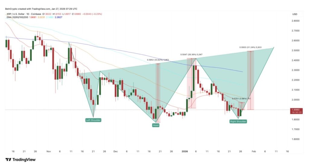On the price chart, XRP formed a large inverse head-and-shoulders pattern that started in early November. At first glance, this pattern looks unrealistic as theneckline is well above the current price.