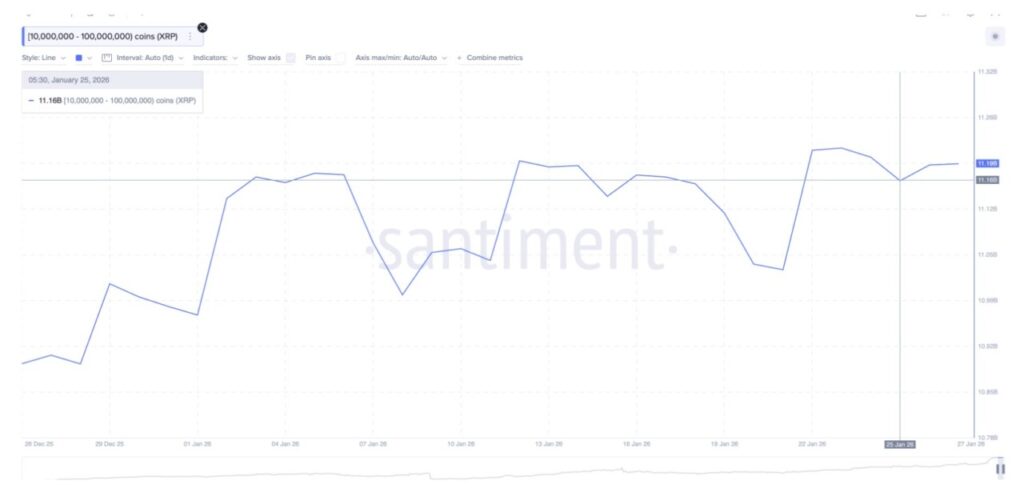 Large holders(whales) seem to be positioning themselves to deal with this movement scenario. For example, wallets holding between 10 million to 100 million XRP increased their combined balance from around 11.16 billion to 11.19 billion tokens after January 25.