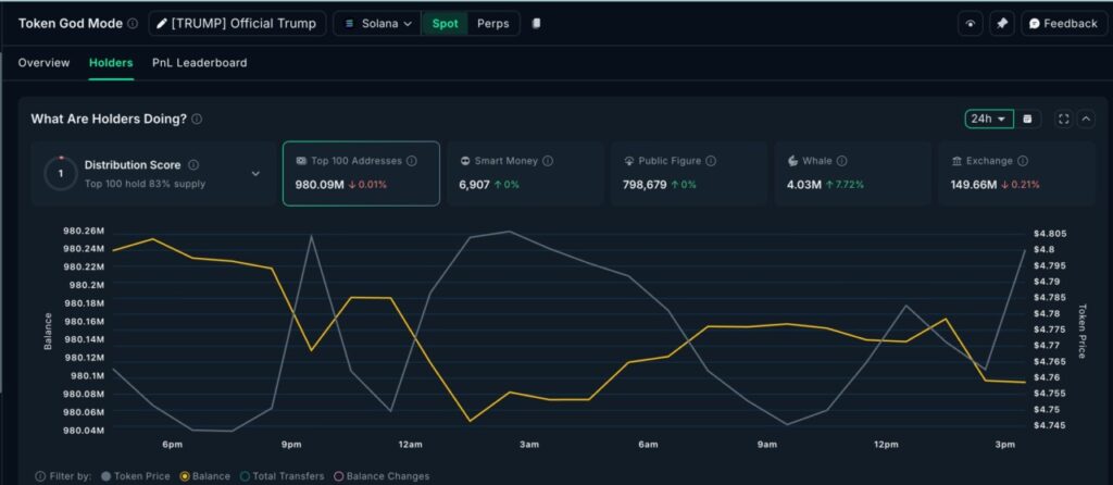 Official Trump is a meme coin that is attracting attention due to its association with popular culture narratives ahead of the release of documentaries related to relevant political figures. Large traders or “whales” have added to TRUMP’s holdings by around 7.72%, indicating early accumulation beyond immediate price momentum.