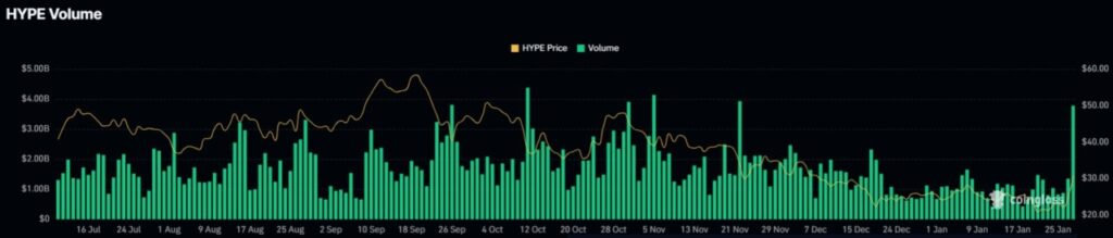 The price of HYPE has recorded a sharp rise of around 20% in the last 24 hours making it one of the strongest performing cryptos in the market. In the last seven days, HYPE gained more than 60%, surpassing the returns of Bitcoin and Ethereum over the same period. This rise has been driven by increased trading volumes and trader interest in the Hyperliquid platform.