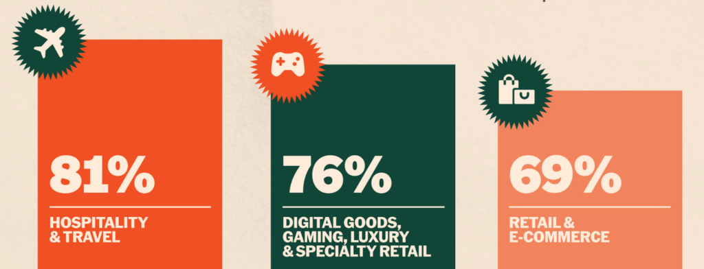 Crypto adoption is strongest among large enterprises, although medium and small businesses are starting to catch up. About 32% of medium-sized businesses and 34% of small businesses in the US have accepted cryptocurrency payments. The hospitality and travel, digital goods, and gaming sectors are listed as the industries with the highest adoption rates. The close-to-technology nature of these industries accelerates crypto acceptance.