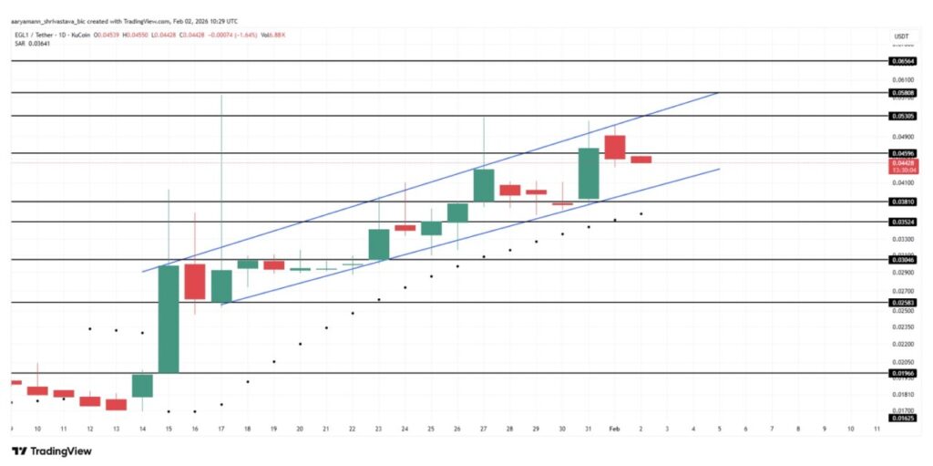 If EGL1 breaks the support at $0.038, selling pressure could increase. A drop towards $0.030 will confirm the bearish scenario and invalidate the bullish projections.