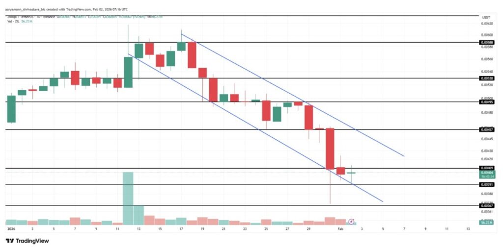 However, downside risks remain if overall market conditions deteriorate. Under sustained bearish pressure, ZIL may break below the channel structure. A drop below the $0.0036 level would invalidate the bullish outlook and likely extend losses and delay recovery efforts.