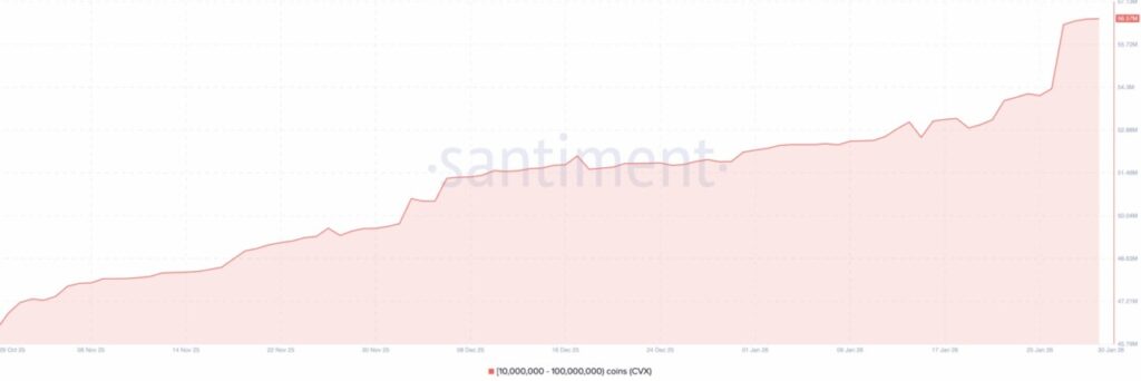 However, accumulation alone is not enough to trigger a price increase. There needs to be confirmation from wider market participation. Without a further increase in demand, CVX prices may remain sideways despite strong on-chain signals.