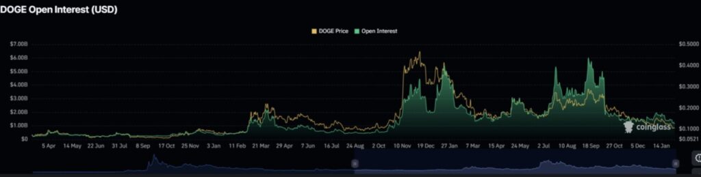 As the derivatives market weakened, open interest in Dogecoin futures contracts fell to $1.06 billion, from $1.27 billion previously.