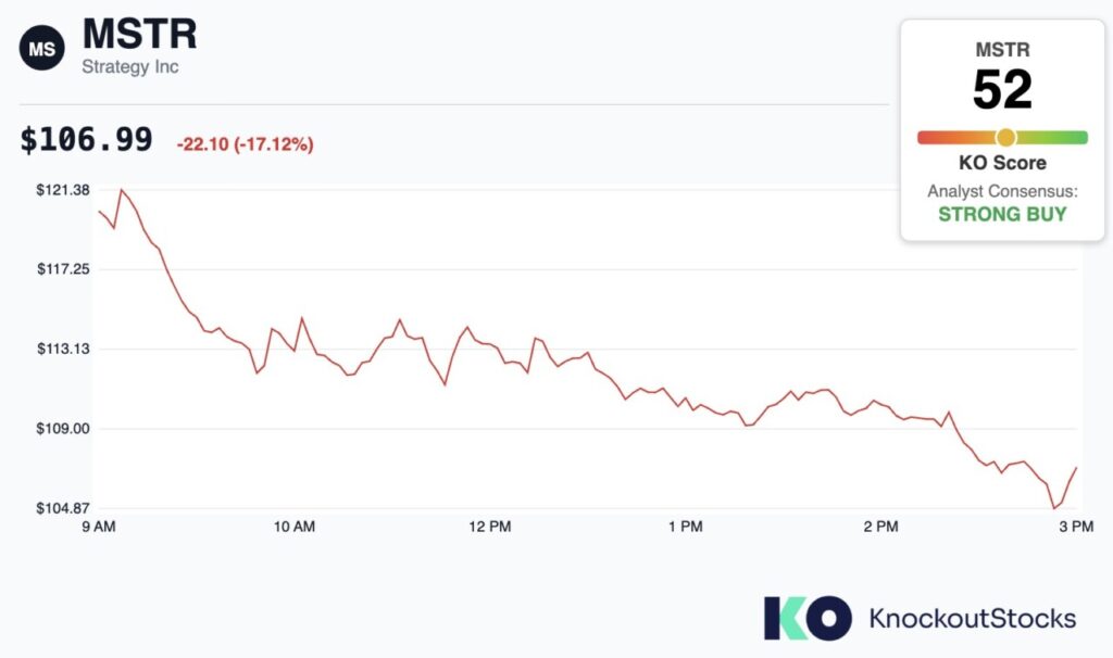 Strategy shares closed down 17% on Thursday at $107. This drop came as Bitcoin hit a low of $62,500 during the trading session. The stock recovered slightly in after-hours trading.